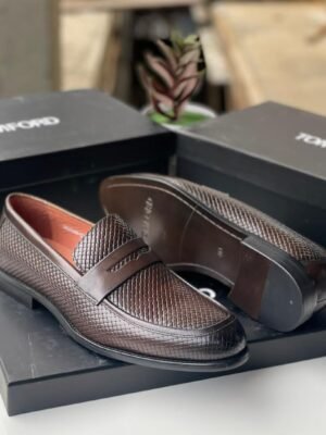 Brown Woven Penny Loafer for Men