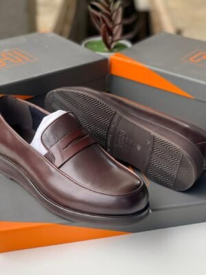 Brown High-Shine Leather Slip-On Loafer