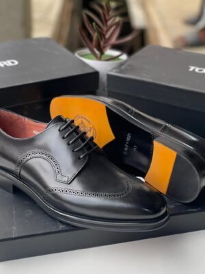 Black Leather Wingtip Oxford Shoes for Men