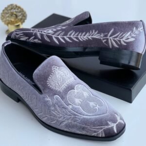 Men’s Grey Velvet Embroidered Loafers