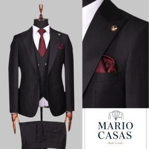 Mario Casas Luxury Wine Formal Suit for Men – Black Button Design