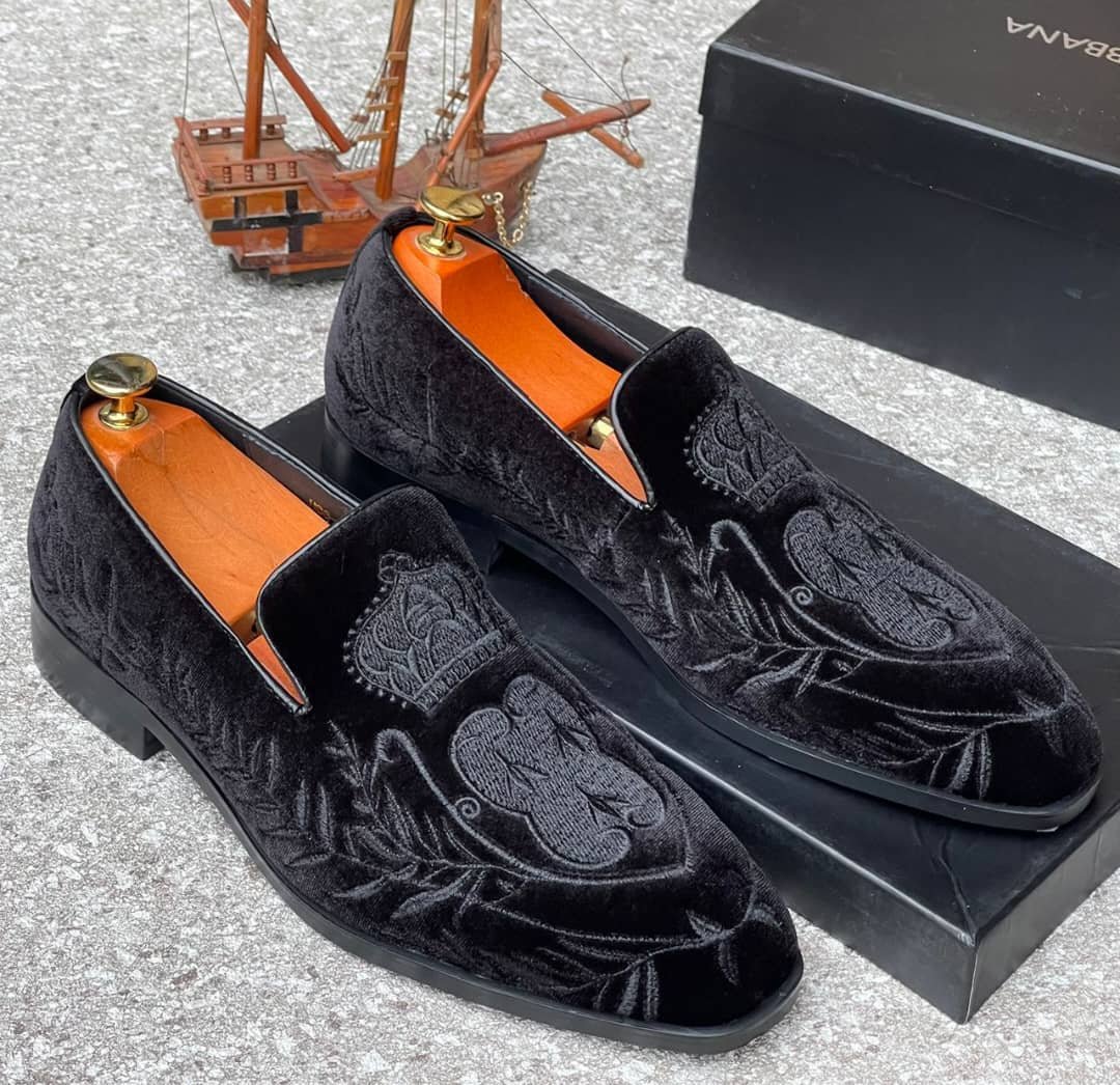 Men’s Black Velvet Embroidered Loafers