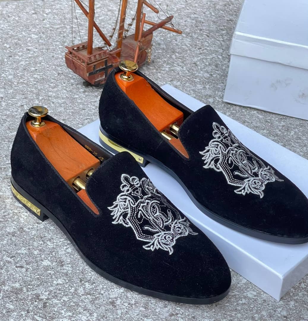 Men’s Black Velvet Embroidered Loafers